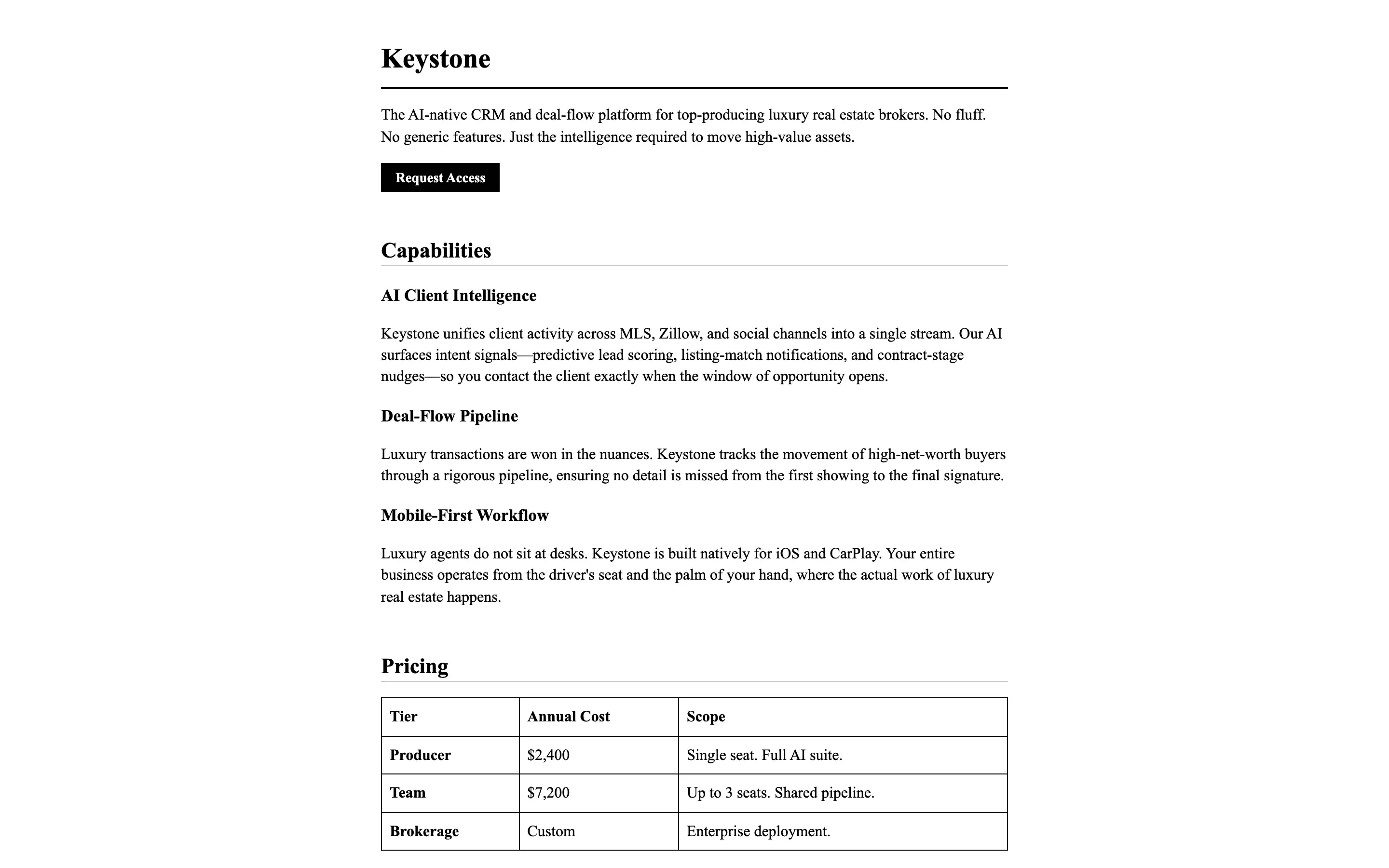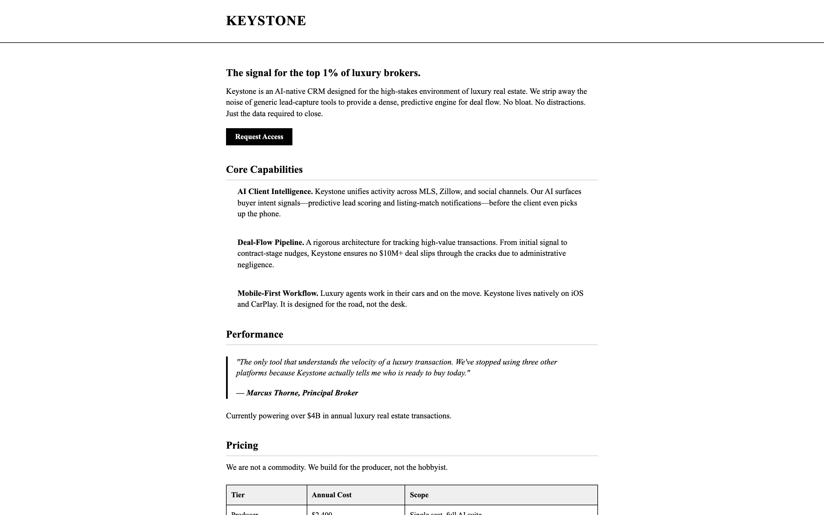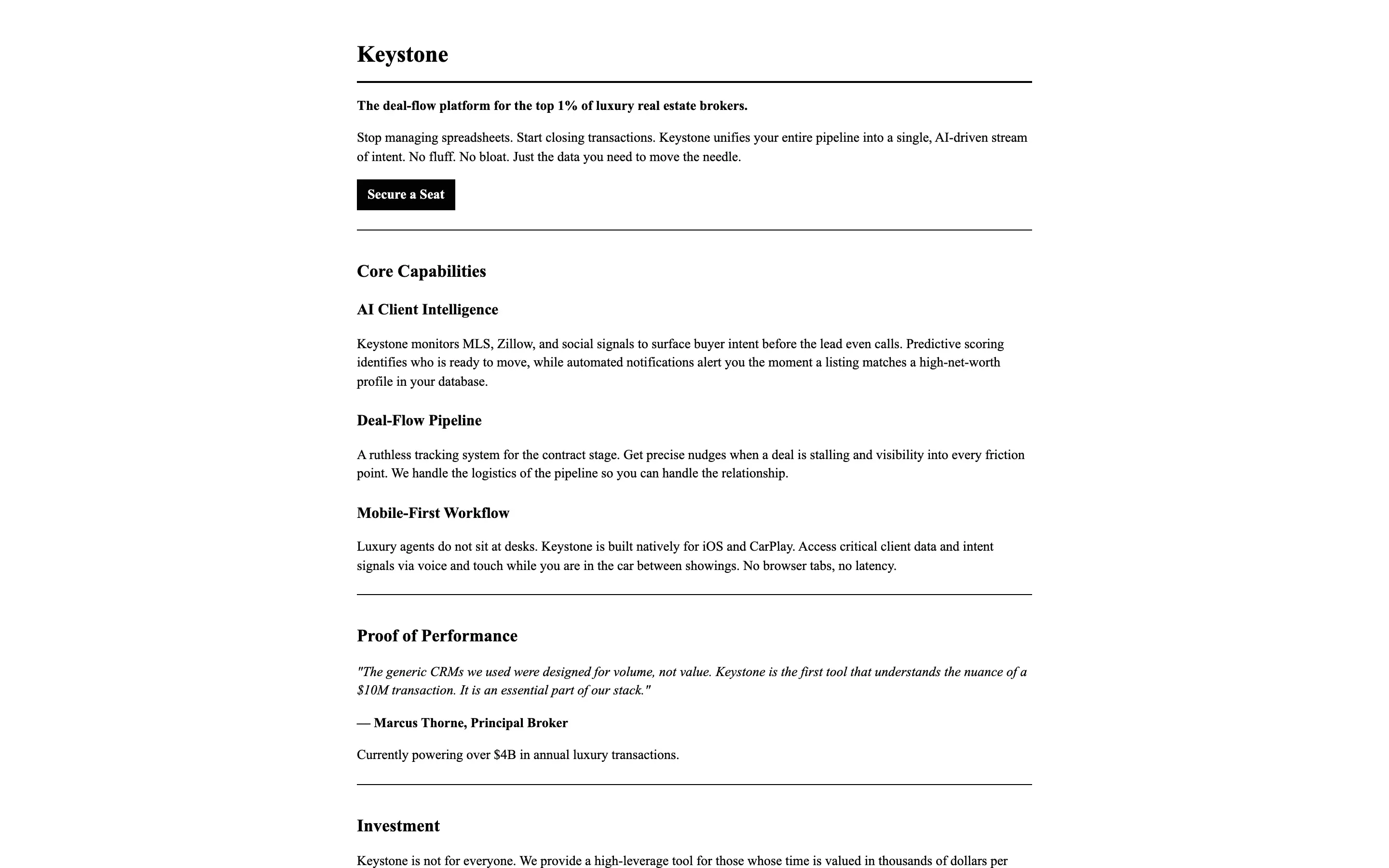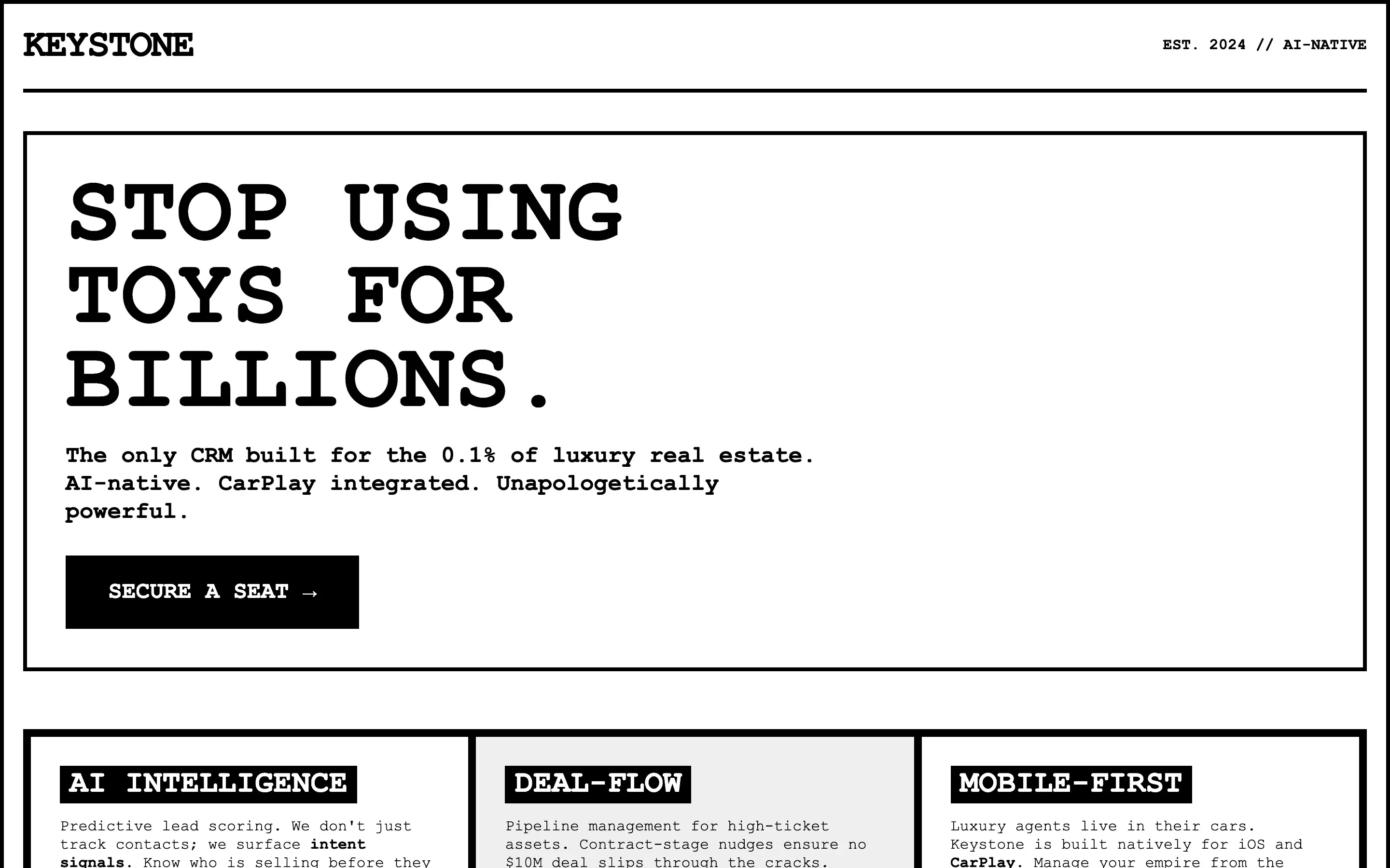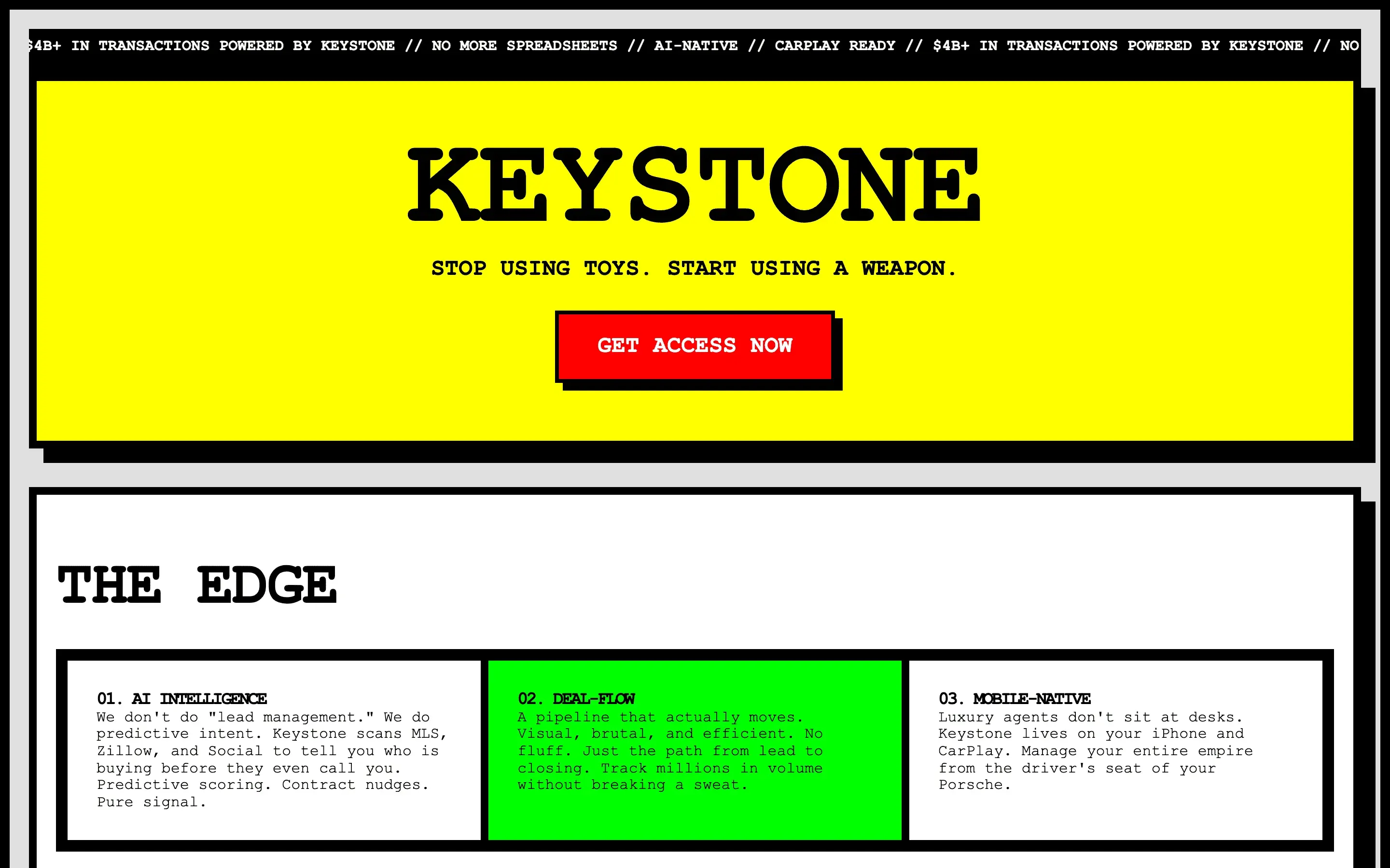 Tests whether a contrarian persona with a specific aesthetic lineage produces visually distinct output that resists the default SaaS template pull.